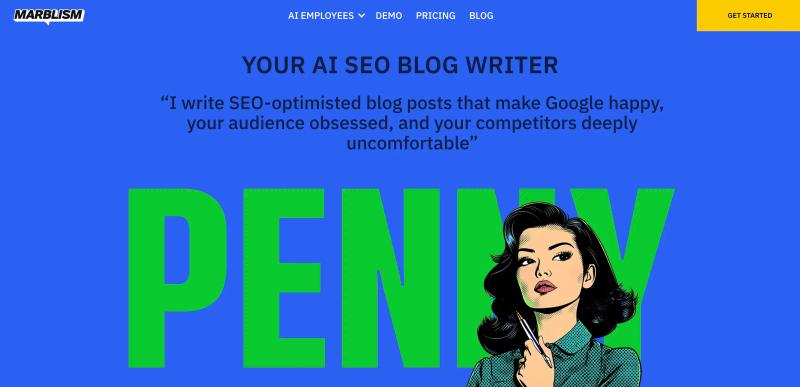 Claiming the top spot in our comparison is Penny, the AI blog writer from Marblism. This specialized AI employee stands head and shoulders above the competition for businesses serious about SEO-driven content marketing.